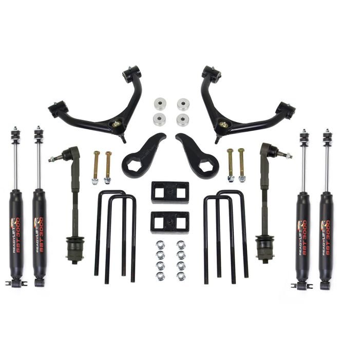 2011-UP GM HD 3.5″ Tubular Arm SST Lift Kit with shocks.. Max Lift: 3.5″F/1.0″R – Max Tire: 34″ NOTE: Single Rear Wheel Only Not for use on trucks equipped with factory TOP overload spring commonly referred to as a camper package. Requires the use of longer front shocks. Shocks not included with kit 69-3411.Solid Mount and even load distribution Forged Torsion Keys w shock extensions OEM Style Cast Blocks Will not deform or change shape No Cutting of OEM Parts or Welding Maintains Factory Ride If it needs it‚¬¦ Its in the box